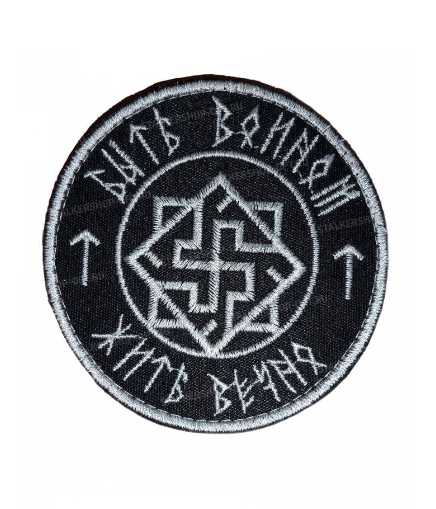 Нашивка на липучке "Быть Воином Жить Вечно", руны, круглая